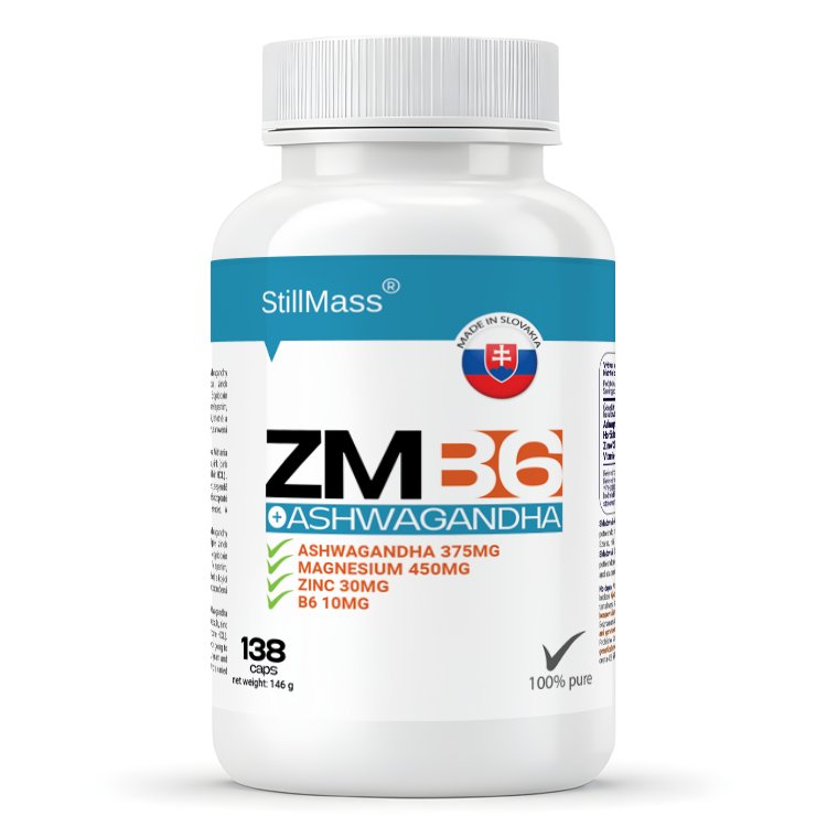 Aquamin Mg TG (magnézium-hidroxid), rizsliszt, Ashwagandha (Withania Somnifera) kivonat (10% withanolid), maltodextrin hordozó, zselatin kapszula, cink kelát (cink bisglicinát), csomósodást gátló anyag (magnézium-sztearát), B6-vitamin (piridoxin HCL) .